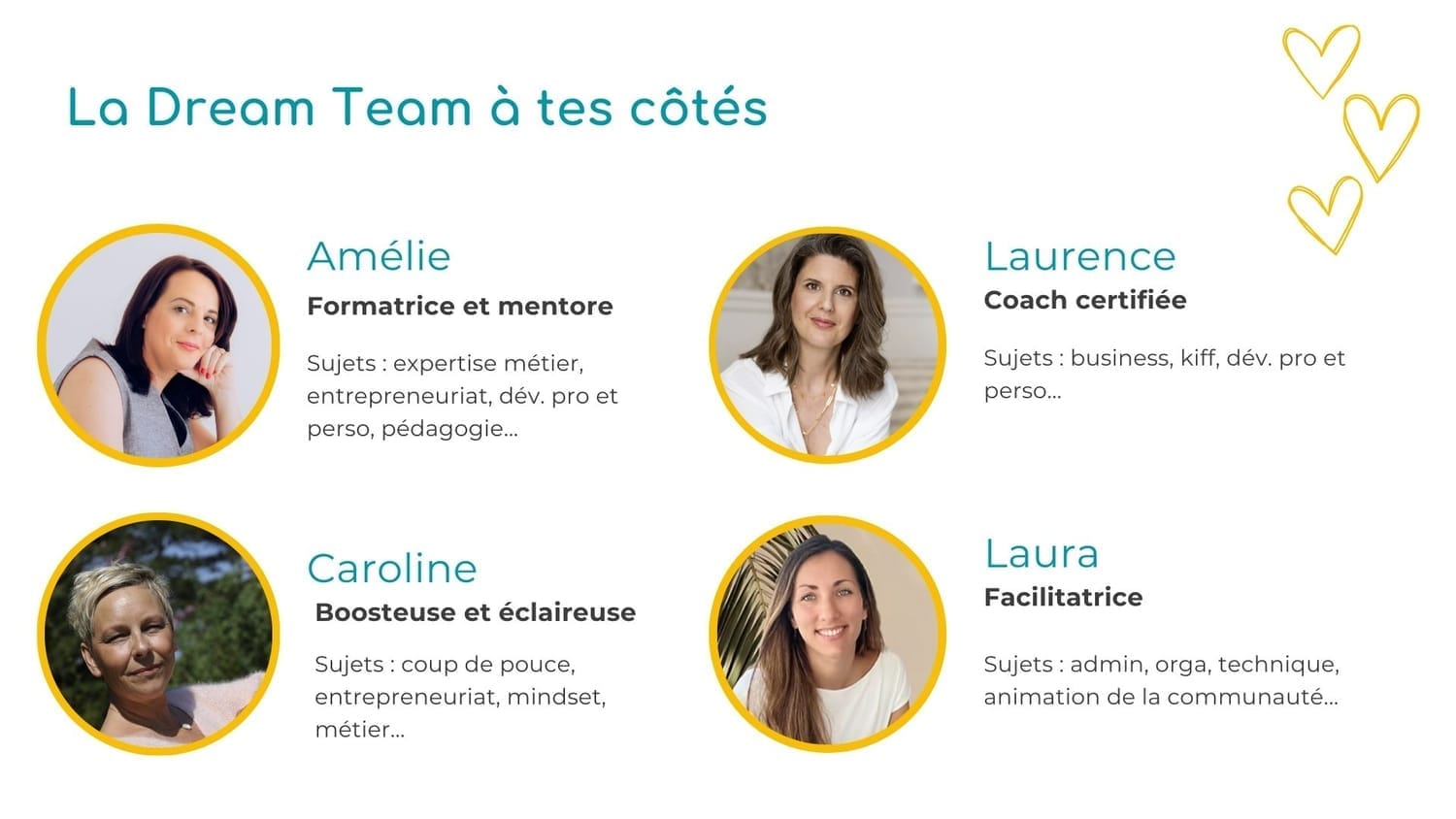 Les séances de mentorat bimensuelles : un temps d'échanges au cours duquel tu profites de l'expertise et l'expérience des participants et moi-même pour dénouer toutes les problématiques qui se présentent (relation, communication, tarification, état d'esprit, méthodologie...).